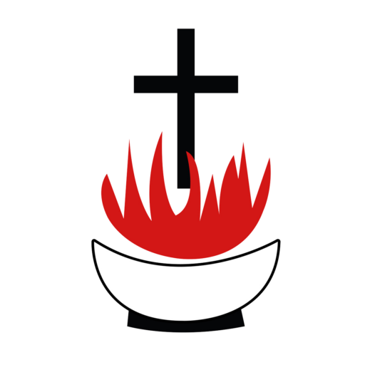 It consists of a vase with a white background, a red flame spouting from the vase, and a black cross above the flame. The white vase symbolizes the purity that characterizes the life of the Christian (2 Timothy 2:20-21). The flame symbolizes the fullness of the Holy Spirit, who fills, transforms and equips lives with His power. (Acts 2:1-4; Ephesians 5:18). The Cross symbolizes the perfect saving work of Jesus Christ accomplished on the cross, which forms the very foundation of the Gospel (1 Corinthians 1:18, 23 – 24; 1 Corinthians 15:3 – 4).